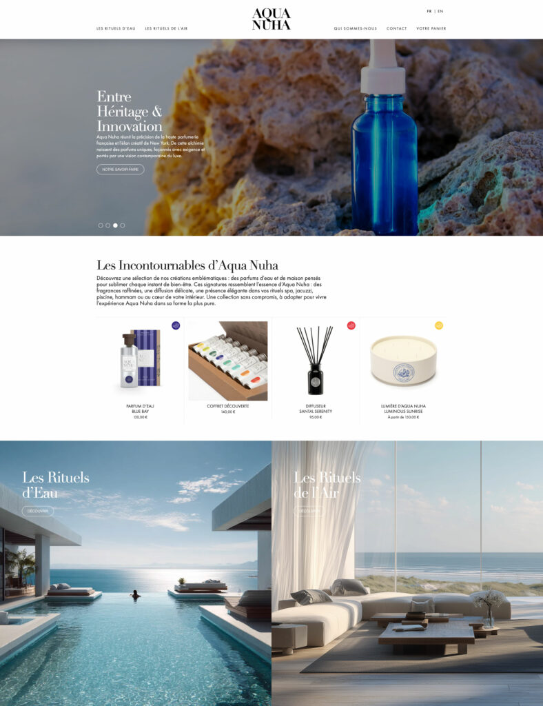 Aqua Nuha conçoit et distribue des parfums d’eau (pour piscines, spas, etc.), des bougies et diffuseurs de parfums.