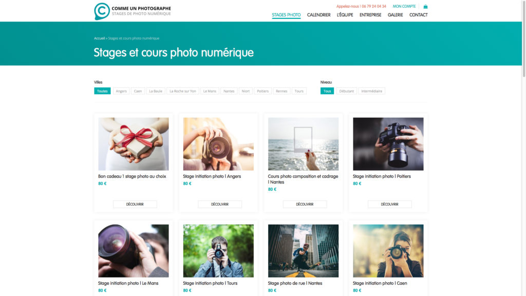 Gestion de l’agenda des stages, de leur capacité. Transaction et espace client avec WooCommerce.