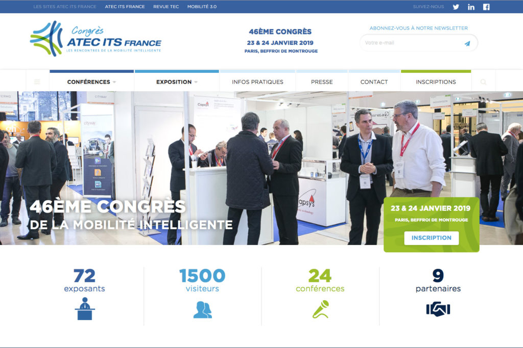 Site WordPress responsive dédié au Congrès ATEC ITS France, installé en multisite avec le site atec-its-france.com, pour un partage des accès administrateurs et utilisateurs en extranet entre les deux sites.