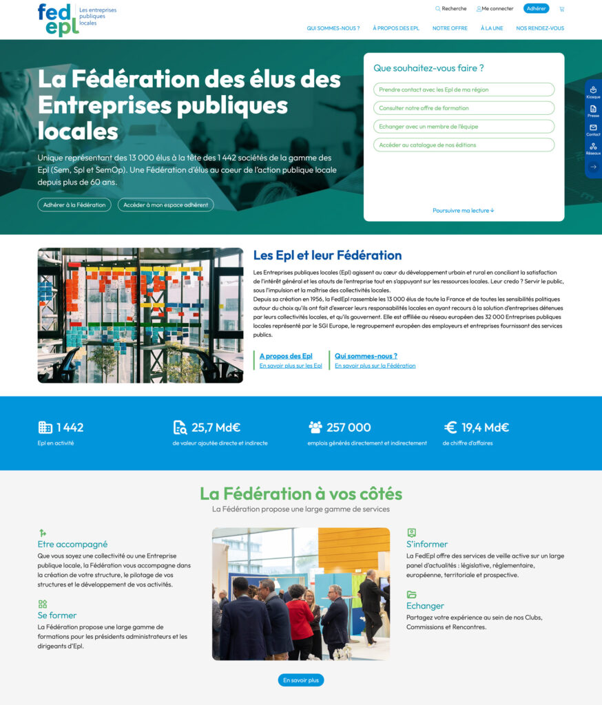 Refonte sous WordPress de deux sites de la Fédération des Entreprises publiques locales : le site public, comportant des milliers de publications, et l’extranet, auparavant totalement distinct en un site unique avec une gestion différenciée des droits et des accès selon le profil de l’utilisateur.