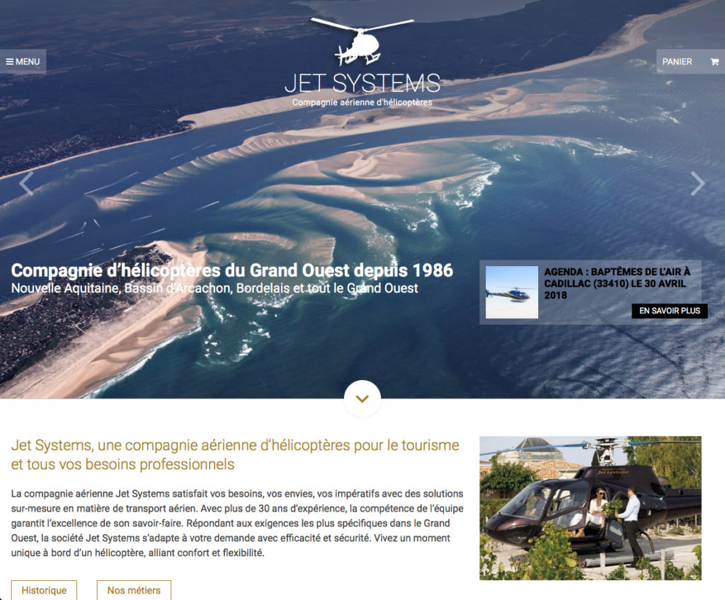 Jet Systems est une compagnie d’hélicoptères du sud-ouest. Le site présente les activités de la compagnie, et propose également l’achat en ligne de billets pour des vols touristiques. Il s’agit d’une refonte de ce site e-commerce dont j’avais réalisé la première version en 2012.