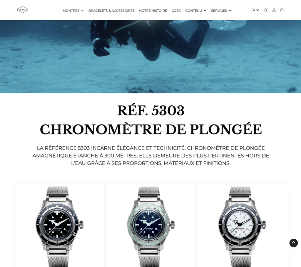 Présentation de la gamme de montres SERICA, boutique en ligne WordPress & WooCommerce